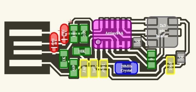 The Makefile was pre-prepared and then added to be uploaded to the permenant memory of the ISP. Only we had to change the line AVRDUDE = avrdude -c avrisp2 -P usb -p $(DEVICE) to AVRDUDE = avrdude -c stk500v1 -P /dev/ttyACM0 -b19200 -p $(DEVICE) (you can do that by adding a hashtag # before the the first line to turn it into a comment, then add the second statement in a new line.