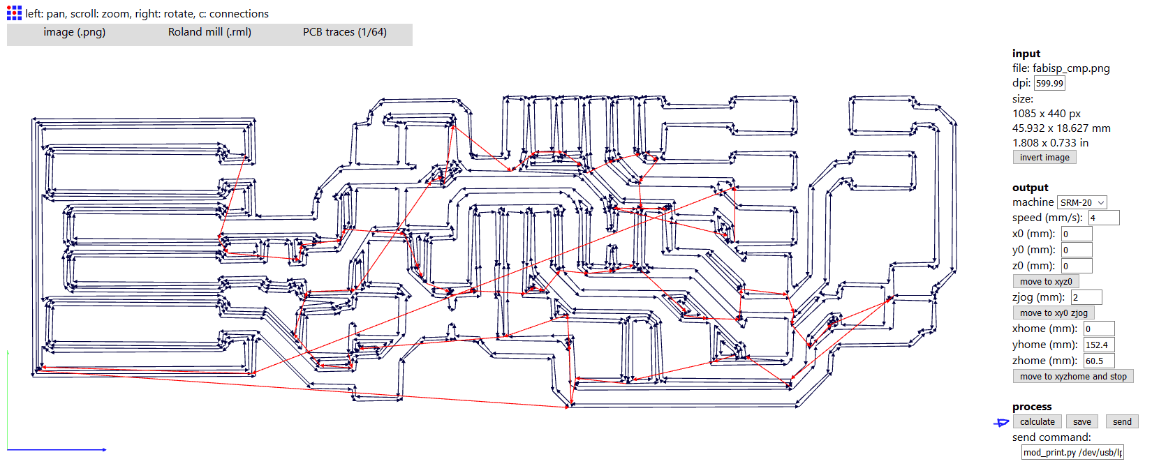 Finally, we click calculate to see how the path will be traced, and then save to generate the G-Code.