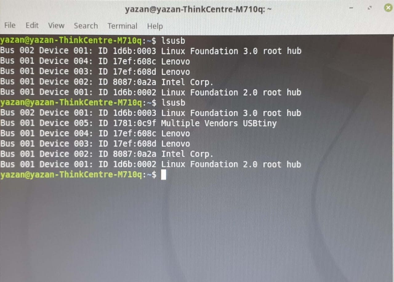 • Finally, we used a different computer that runs on Linux to test if the ISP is working, using the command "lsusb" and it does!
