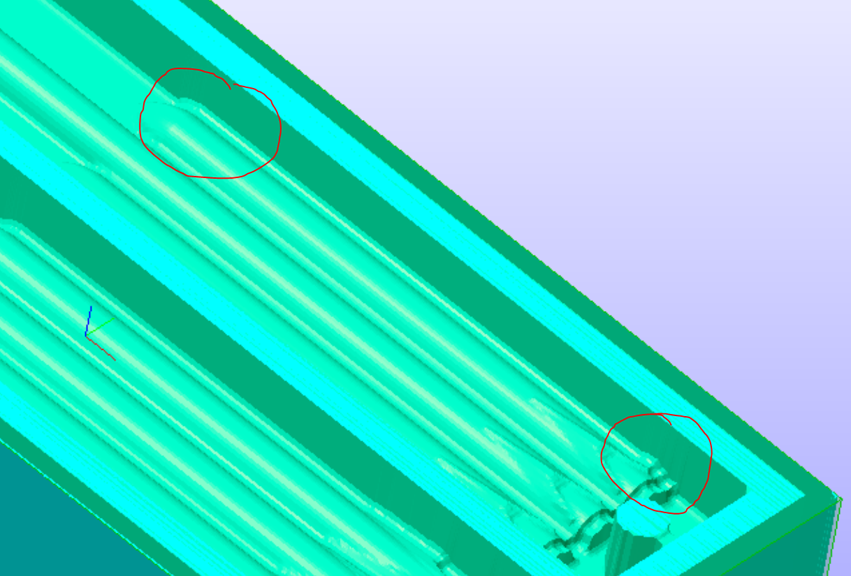 because of my large design, the clearances were too small for the tool to mill them properly.