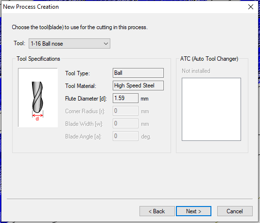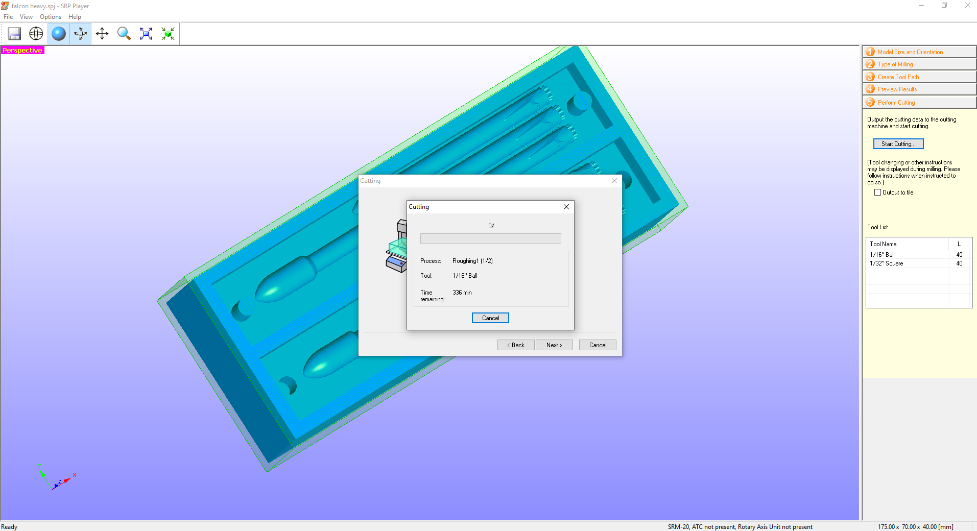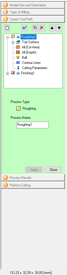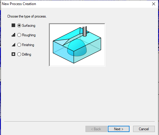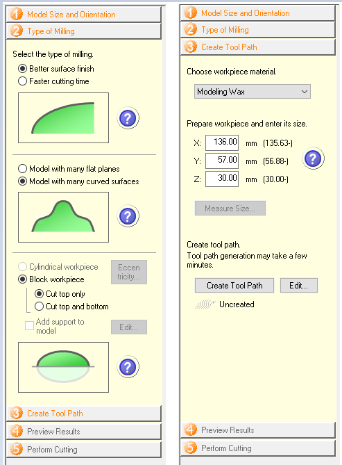 After setting the dimensions and rotation, we have to select the type of milling, then we create a tool path.