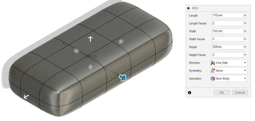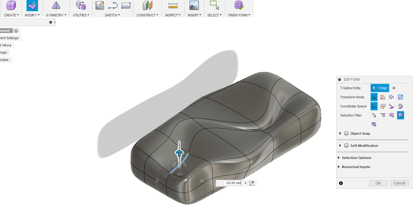 I used Fusion Sculpting mode to create the blob. To enter that mode, click on the sign shown in the figure: