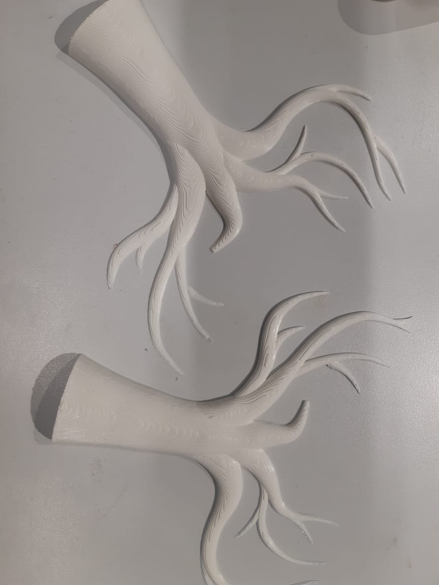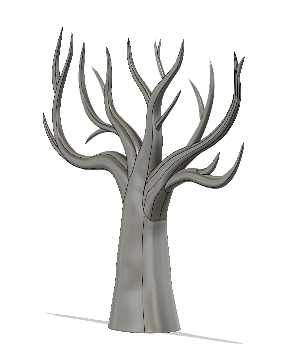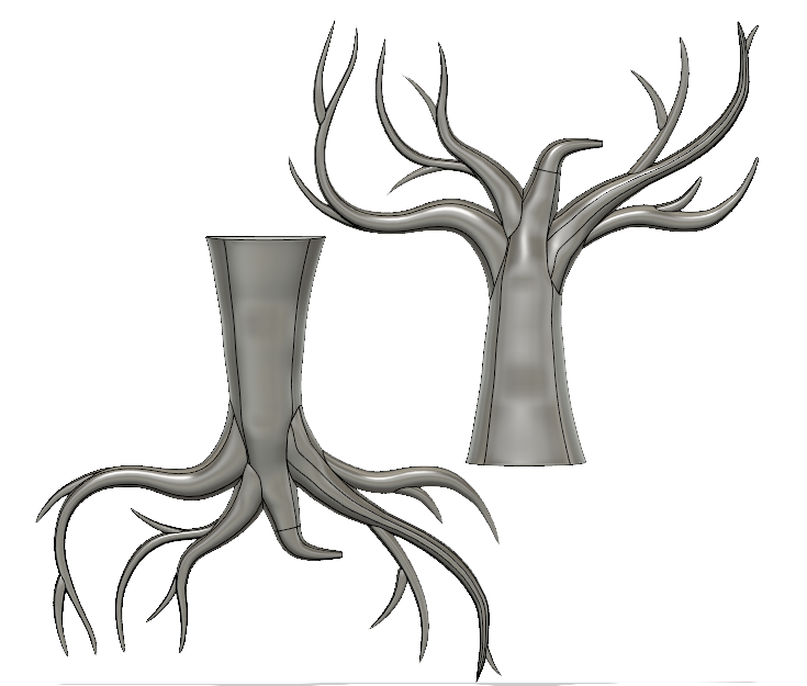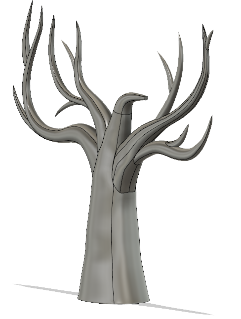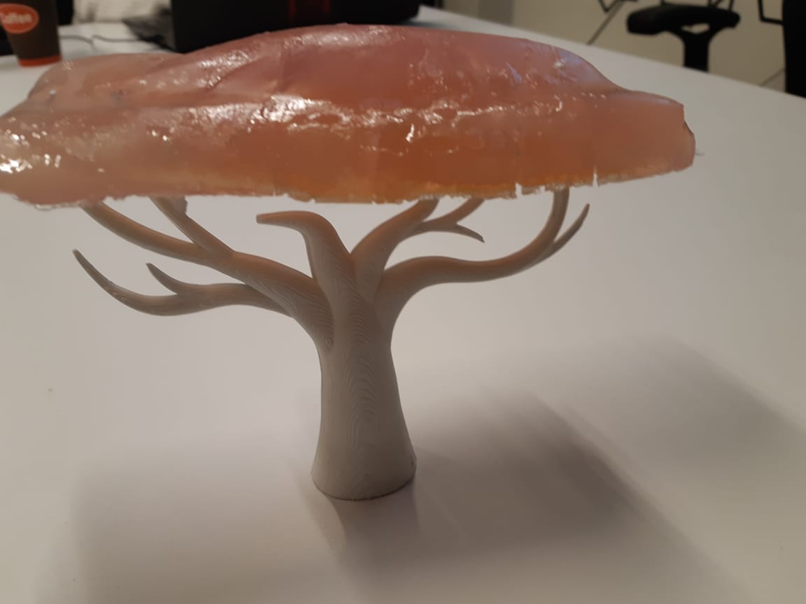 I had this bizzar thingy pictured in my mind and I used Fusion 360 to create it. It consists of three parts: a trunk, a crystal, and a blob. The blob was the part to be casted inside the mold created by milling. The crystal was rather a three stages process; the first, "negative" mold was created useing 3D printing with a PVA material, then inserted inside the cast of the blob, and when cured, the whole cast was placed in water. Hence, the PVA material would melt, and the cast of the blob would have a cavity as if is the mold of the crystal. Then a resin of different colour was to be injected to make the crytal placed inside the transparent coloured blob. The final part which is the tree trunk is not a molding and casting product, but a merely 3D printed part made to be dipped partially in the cast of the blob to hold it up when cured.