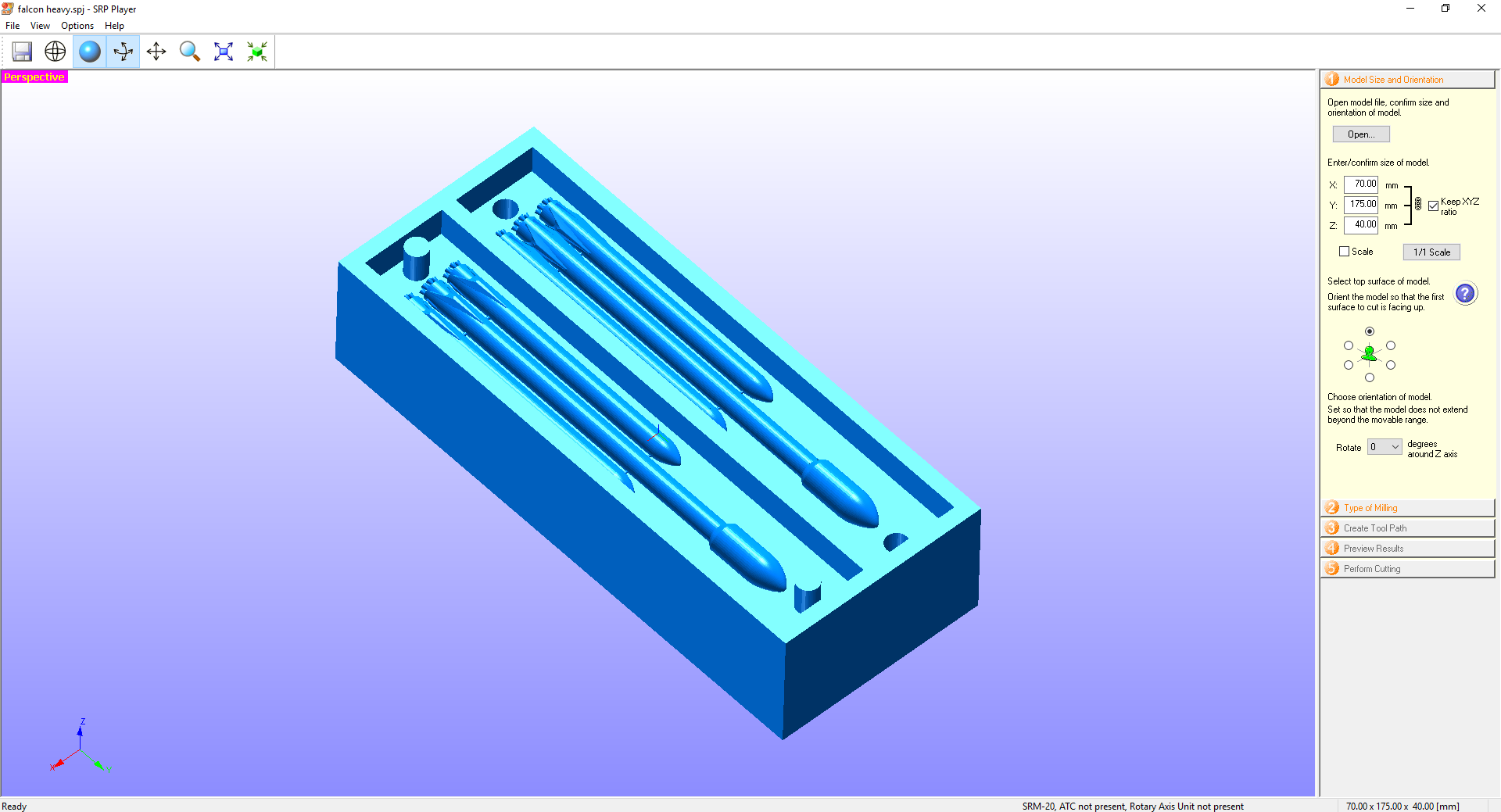 I found a model of Falcon Heavy on an open source and used it for molding. On fusion, I prepared the model to create a positive mold, then saved it as STL file to upload it to the milling machine.