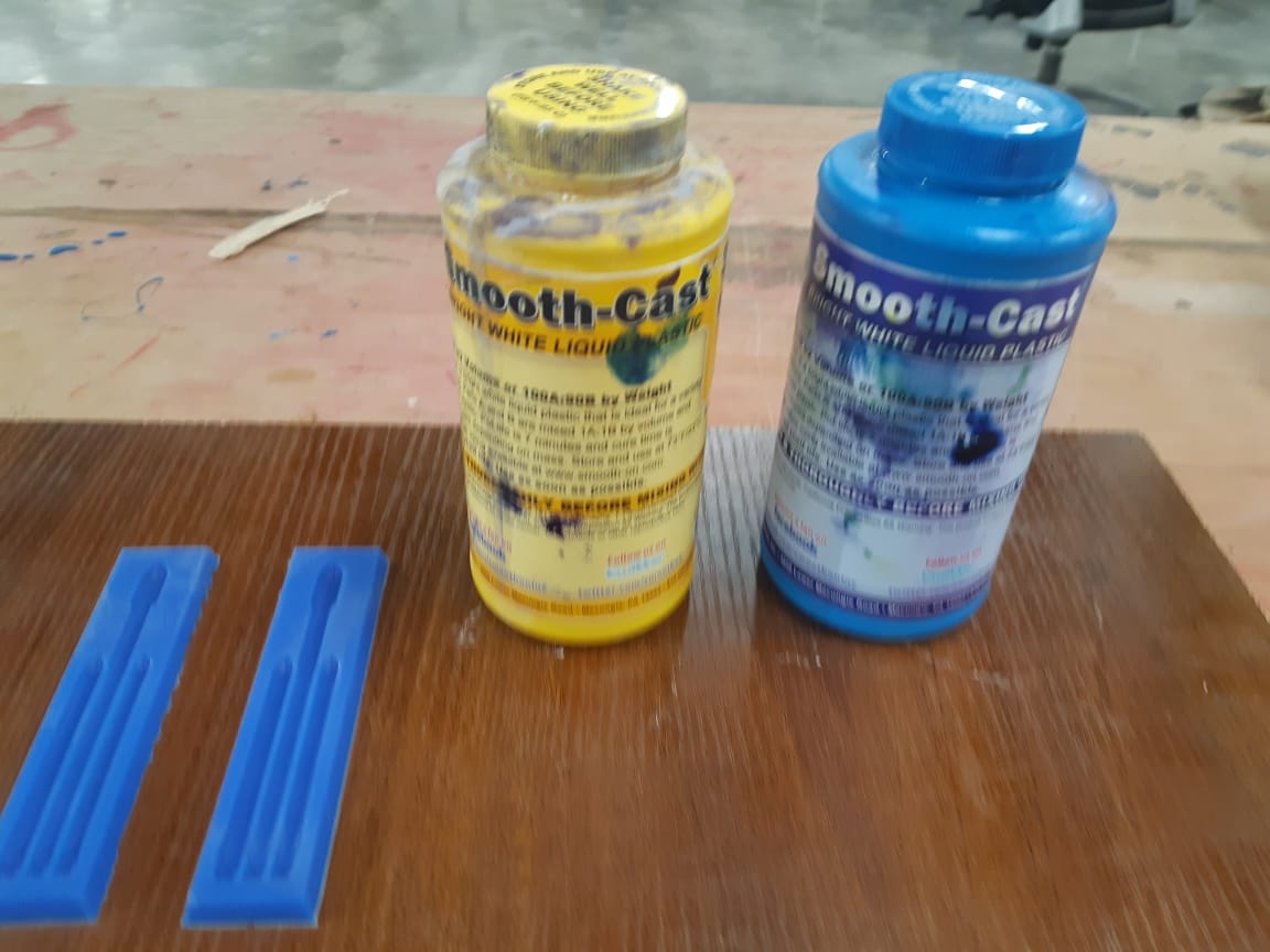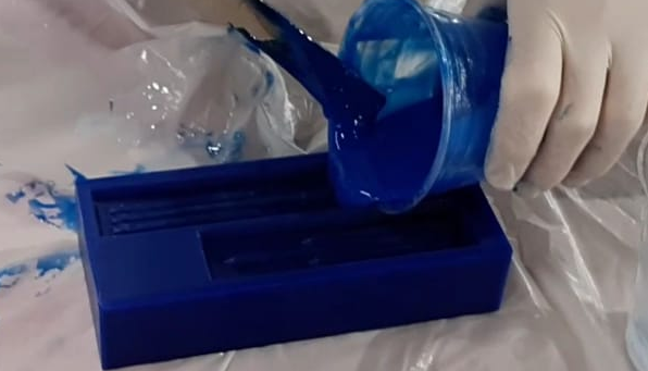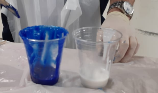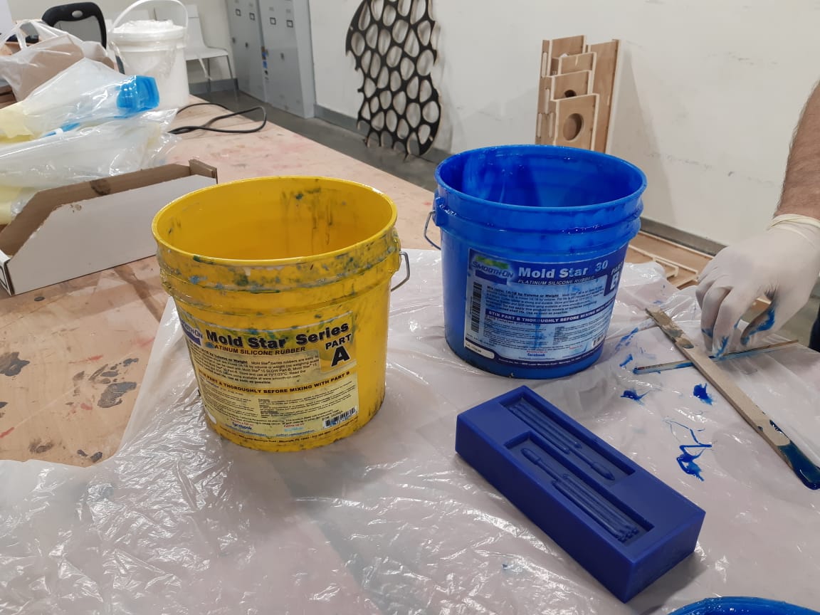Checking Smooth on website to see the datasheet for each material, I learnt that my process should start with mixing equavilant amounts of material A and material B then pouring them carefully in the wax block, then wait around 6 hours till the mold is cured.