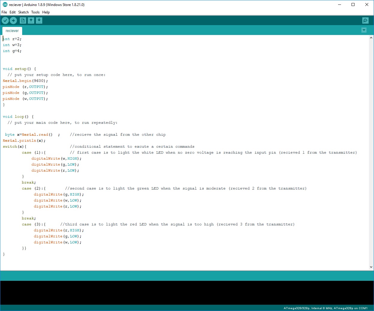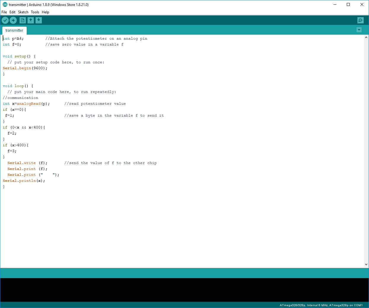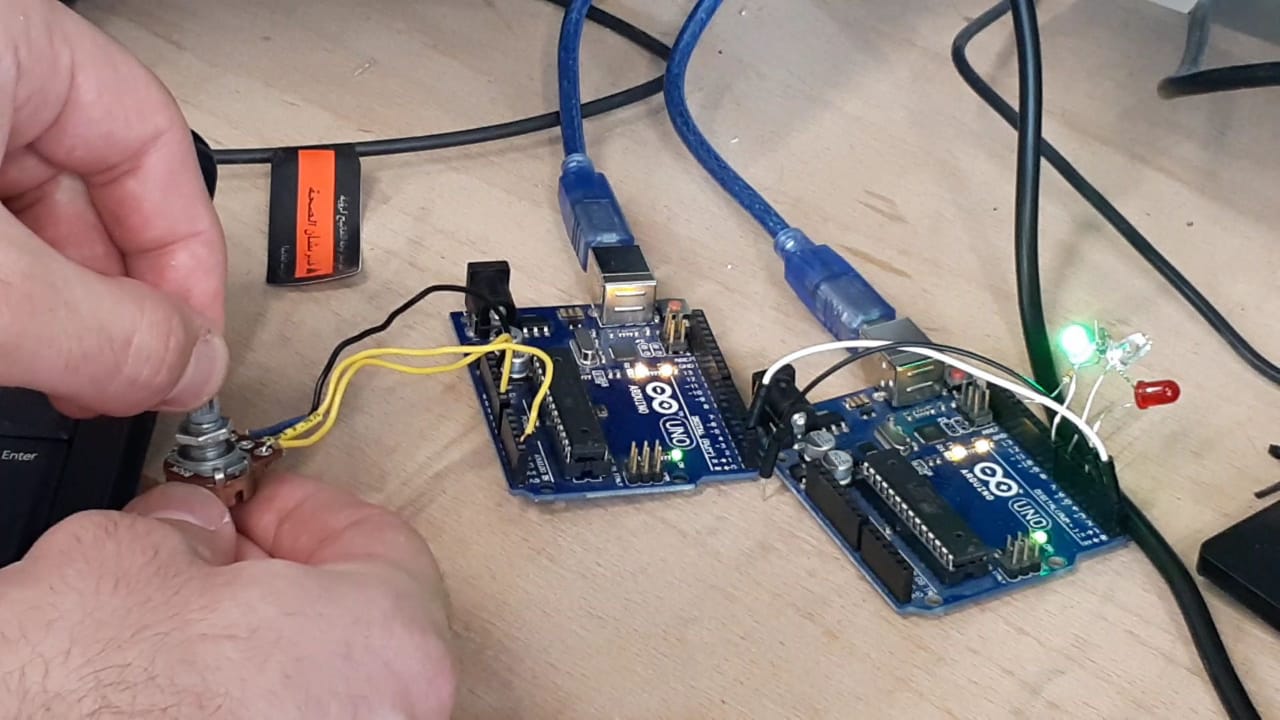 At first, I used two Arduino boards to test and adjust the code. Until I made sure the code was working perfectly, I uploaded it to my Atmega boards.