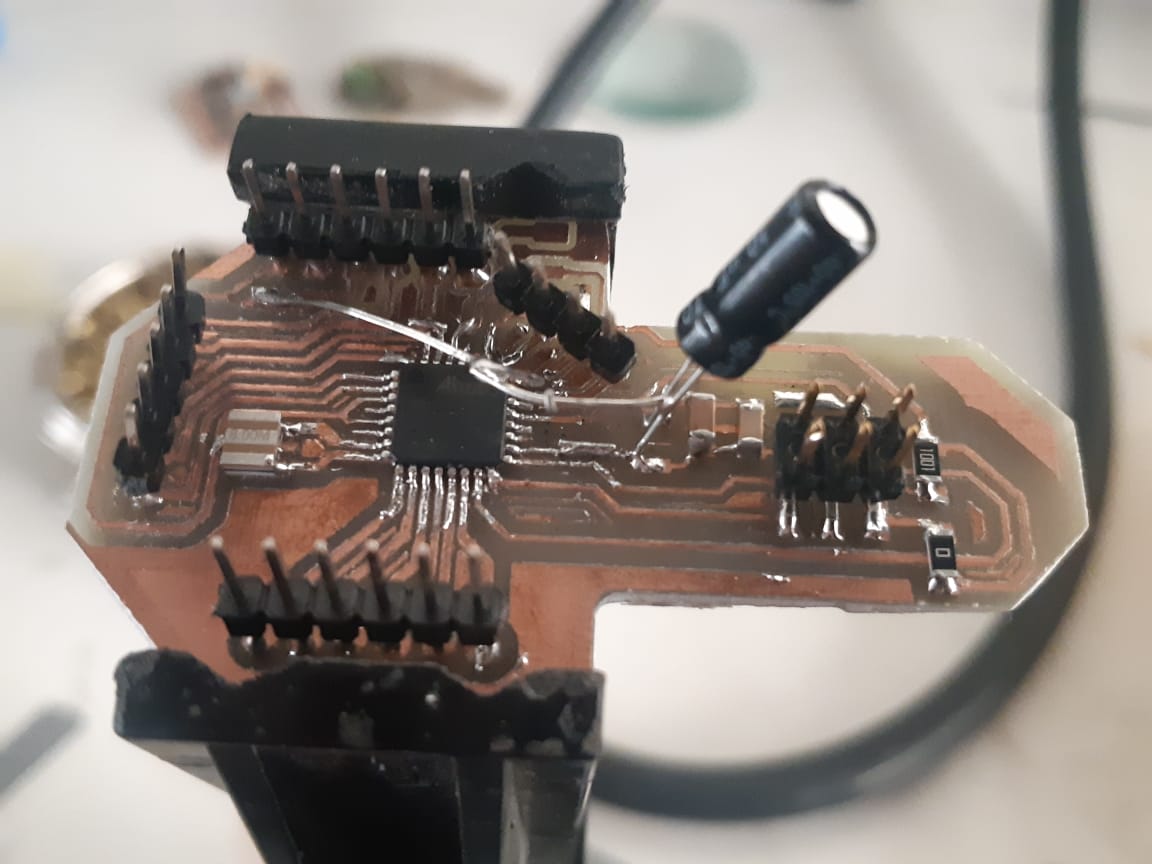 At first I tried to use an Attiny board, which I later learnt that it has no hardware that suports serial communication and as an Alternative, I needed to use the software serial, which turned out that it takes too much of the memory and is tricky to succeed. So then I made a general Atmega board to use it for this assignment.