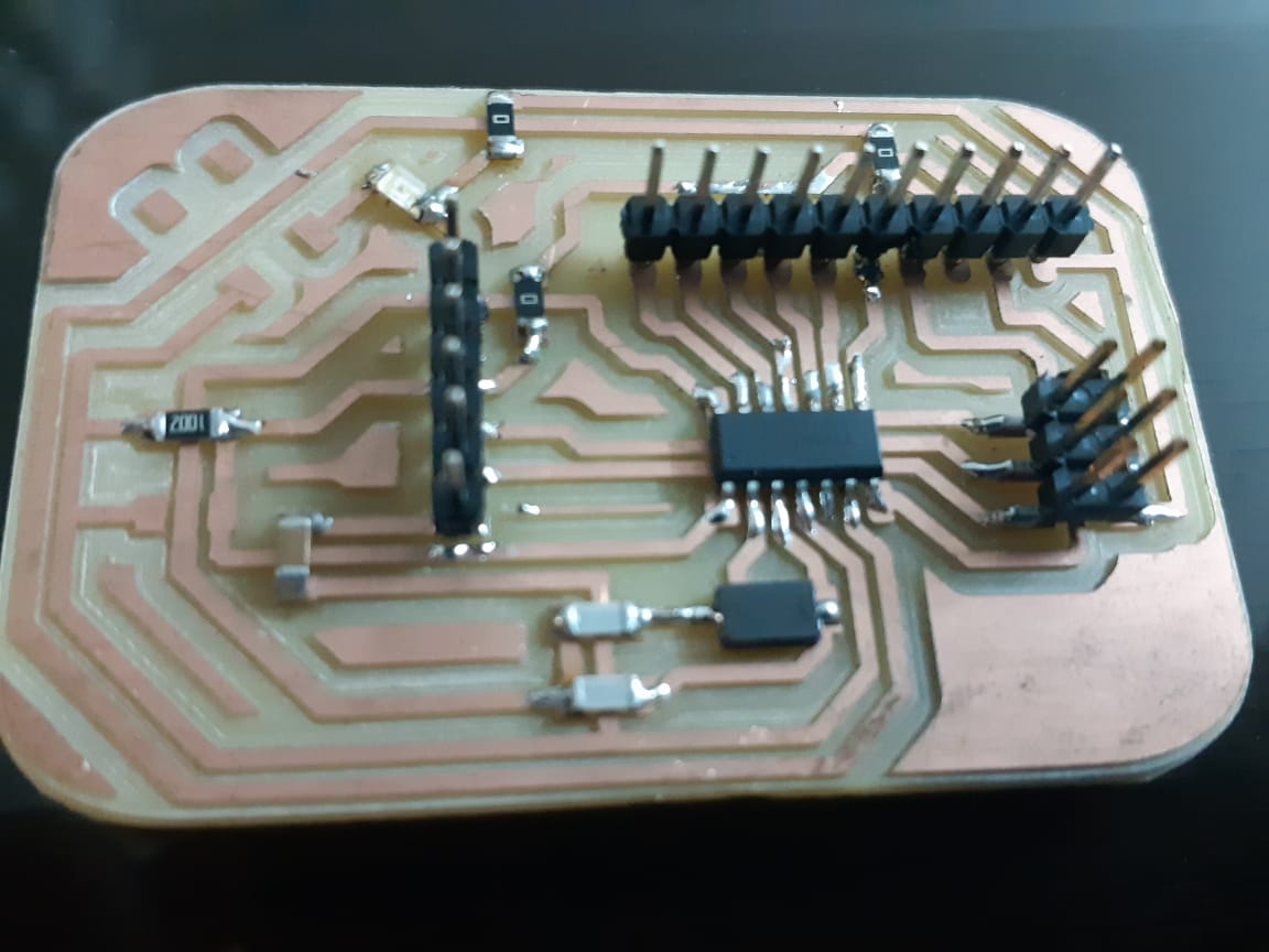 The first Attiny board I made was not going so well, the tracing had problems and I had to make multiple jumpers. Anyhow, after struggling with it and finishing the soldering process, I came to the programming part. And that when I found that I had committed a big mistake; I designed the board for an Atmega 328p, but actually soldered an Atxmega, which have different orders for the pins. And thats when I had to create a different board. And since I am making a new one, I made a whole new design.