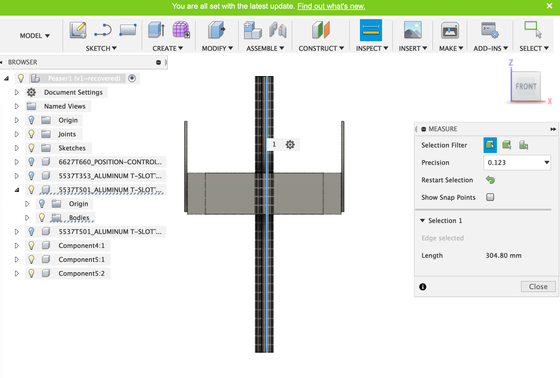 First I examined the small laser cutter I used before and decided to model upper linear rail part mainly. The goal of this week is to assemble the compartments and move it on the rail. As for software, I selected Autodesk Fusion360 because it is free (limited to students, hobbies.. ) and powerful integrated tool.