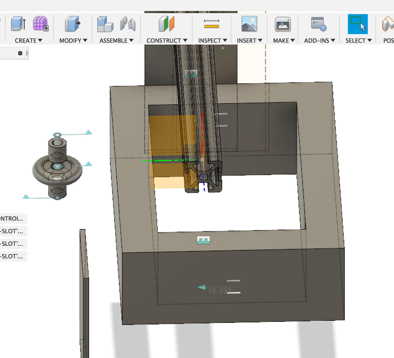 To joint T-Slot to side panel was difficult. First I selected the cross section of the T-slot but it was not attached. So I selected center (inner) cylinder of T-slot, then it attached successfully.