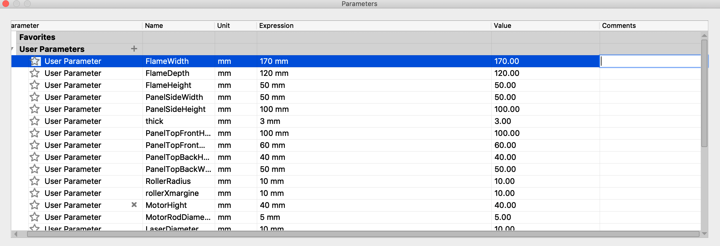 I defined some user parameters such as dimension of frame to enable parametric design.
