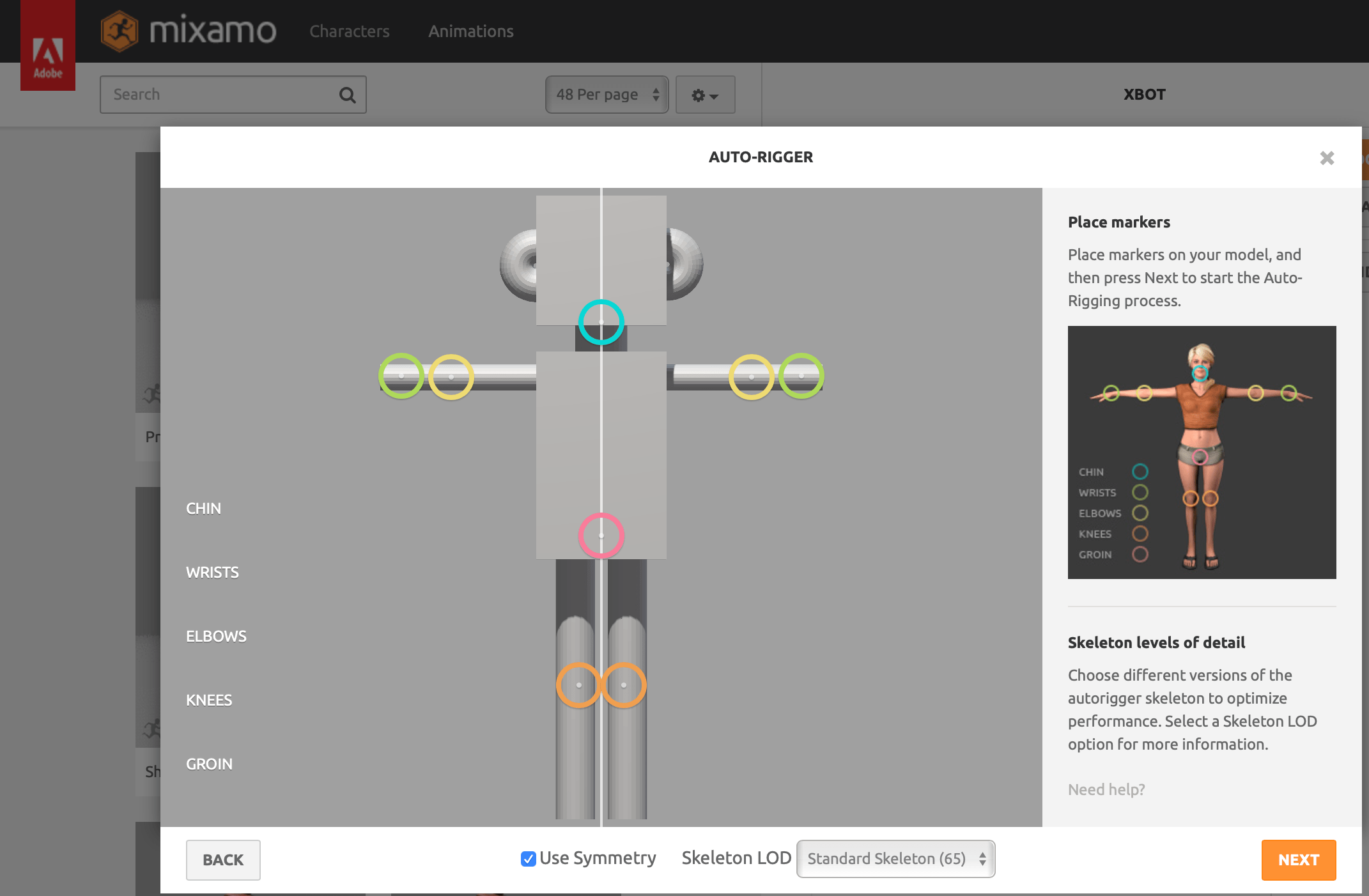 I am interested in Mixamo, but I have not used it yet. So I tried it this time, it was very easy and fun! First I uploaded the monkey model as character. of course it is able to choose one from example of characters. The UI to place markers of rig on the character was easy and intuitive. I supposed that some kind of conversion would be necessary for Unity, but “FBX for Unity” was already selectable at export window.