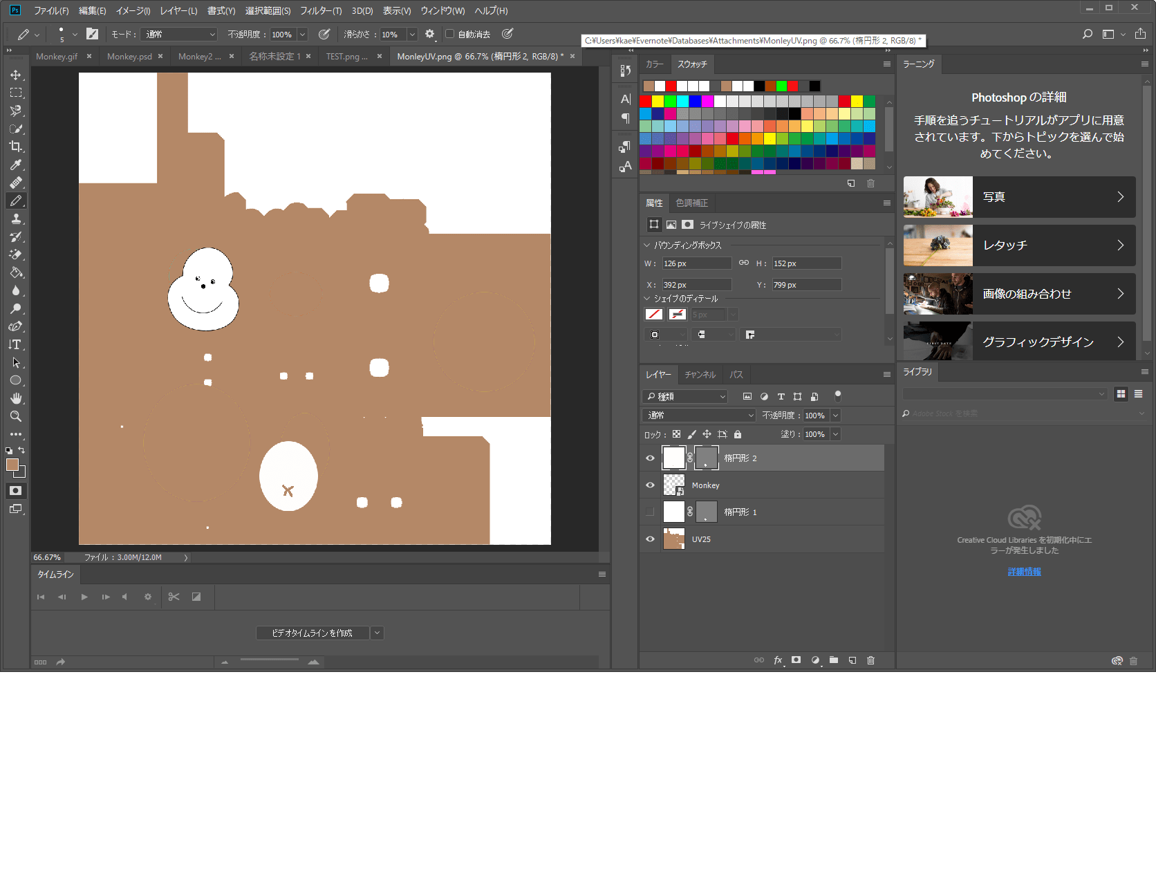 I colored the UV map and placed the monkey face. I also tried pen tool of Photoshop, but I felt that Illustrator’s UI was better for me.