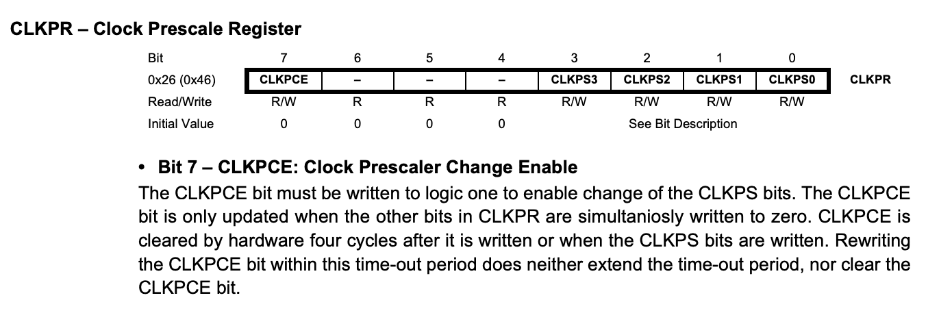 CLKPR = (1 << CLKPCE);
