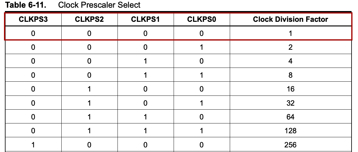 CLKPR = (0 << CLKPS3) | (0 << CLKPS2) | (0 << CLKPS1) | (0 << CLKPS0);