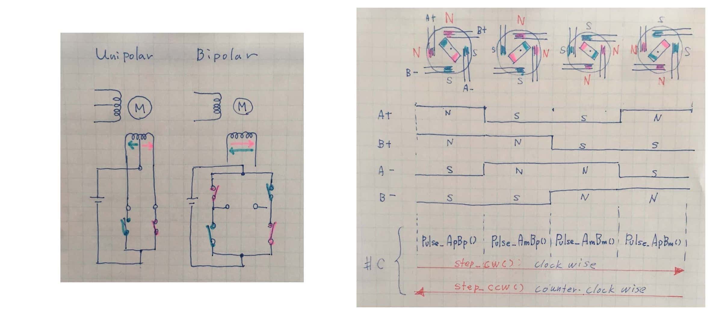 - Motor Control The motor control sequence (above right image) corresponds to the function oc C code. In case of clockwise step, the sequence is from left to right, the function call is Pulse_ApBp() > Pulse_AmBp() > Pulse_AmBm() > PulseApBm(). In case of counter clockwise step, the sequence is opposite, from right to left.