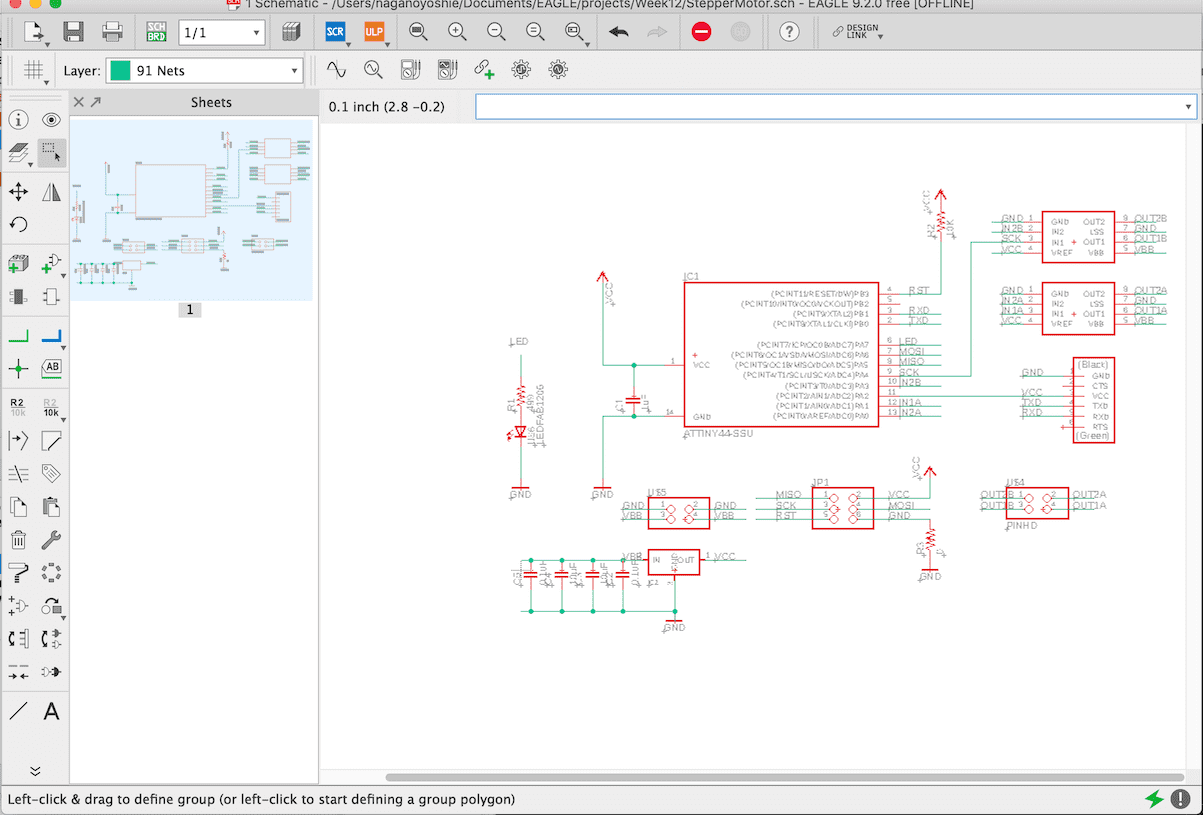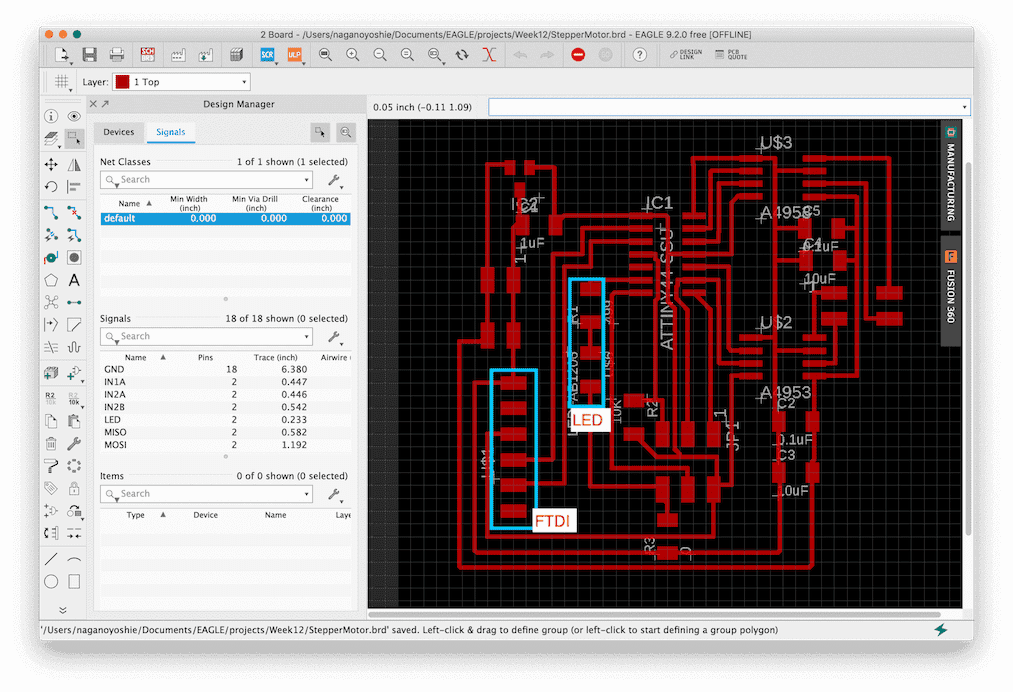 My plan is to use stepper motor (bipolar) for my board. It might be used for my final project to move mist tube. Based on the example, I customized to add LED as output device, and FTDI to communicate with application.
