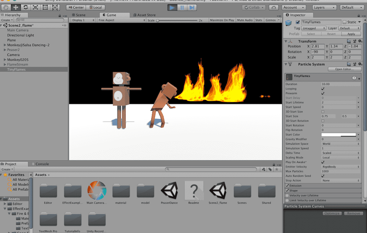 I added particle asset to the scene I created at week#3, and got a feeling of flame visualization. For the final system, I will use Raspberry pi, so it will be difficult to run the Unity application properly. So I will develop simple flame animation using Processing or Python.