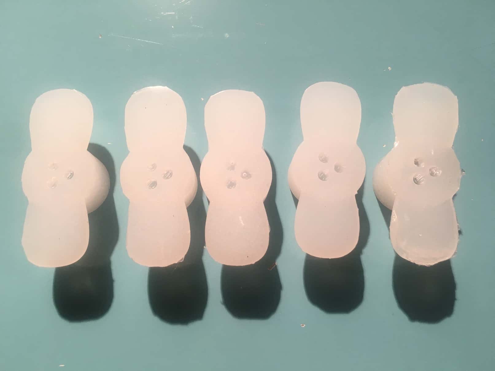 So I printed new mold with ABS and PLA, then made five parts using Ecoflex 00-50 that I used week10. 3D Printed molds were not stick to the flexible material and could removed easily.