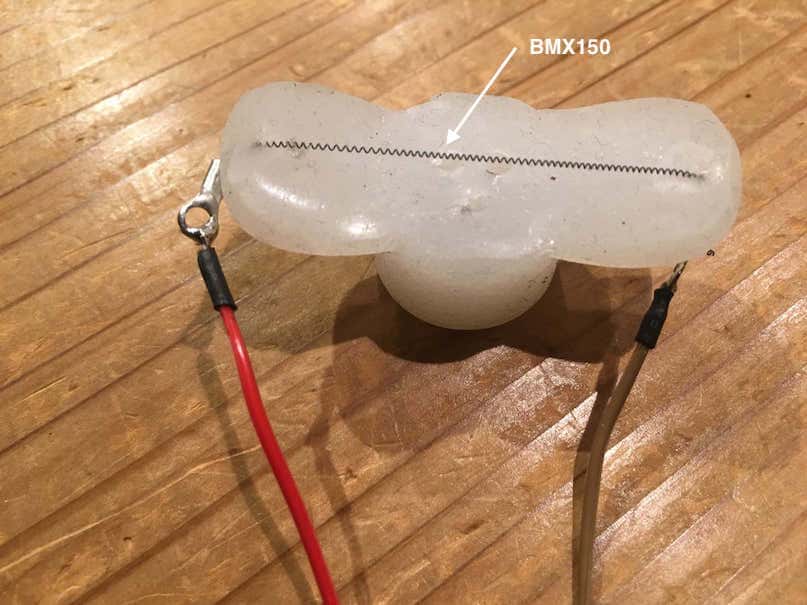 I planned to use Biometal BMX150 I used at Mechanical design week.( >> detail ) . It is a fiber-like actuator based on shape-memory alloy, and moves like a muscle when current flows. The actuator was controlled by Arduino PWM at Mechanical design week. For the final project, it was controlled by Raspberry pi digital port.