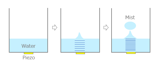 Mist is generated when the water depth and frequency, diameter, thickness of piezoelectric ceramics are optimized.