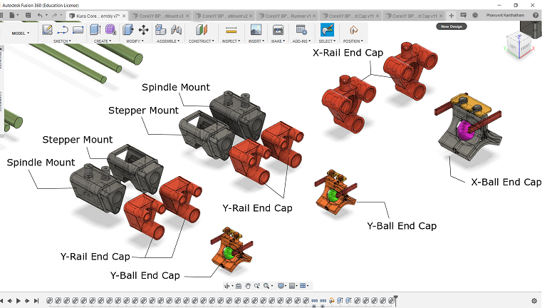 - The Kura CoreXY BPM mechanism concept design developed nicely in Fusion 360 last week…but refinement will be required.