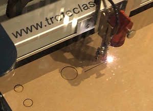 The plate was 3D modeled in Fusion 360, projected to a 2D image and exported as a DXF file for use by the laser cutter. We chose to cut 2 pieces of the Y-Plate out of 4mm MDF…with plans to stack them to create an 8mm thick component.
