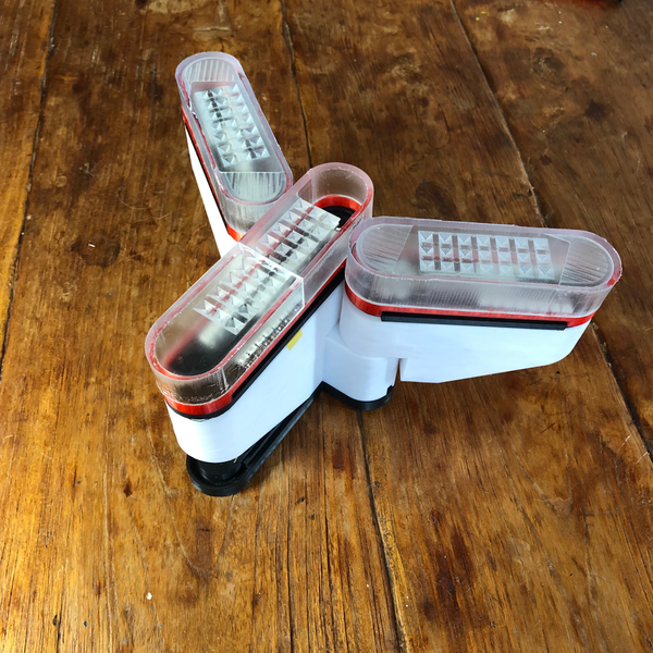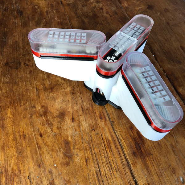- The mechanical hinge designed to rotate the wings did not interface with the servo well…and wing rotation became less reliable with time, as the screw holding the wing to the servo stopped locking onto the PLA material (slipping from rather than biting into the material).