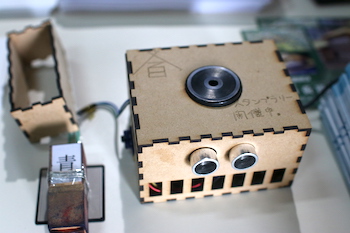 Here, I am collaborating with staffs of Small Art Project(called Minato Media Museum. In demonstration of Sensor Devices and Idea thinking with them, I did two sensing project here.