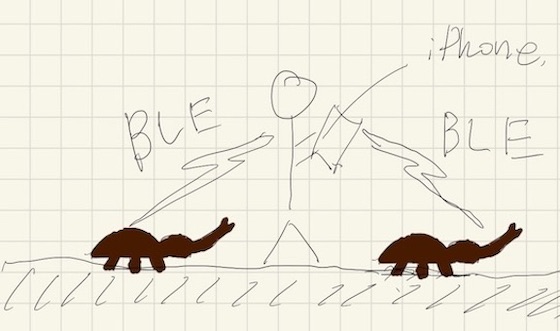 Next is used for sensing outside with walking around. It looks like radio controlled toys. The robot have some sensors that measure surrounding conditions (temperature, UV Index, brightness and so on). Users controll the robot from their own tablet or smartphone via Bluetooth Low Energy.