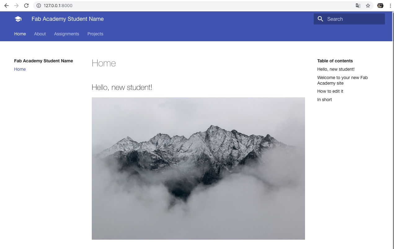 Now, I am get ready to build up my own fabacademy website. Because I want to get used to wirte documents in markdown, I decided to use MkDocs for generating my website.
