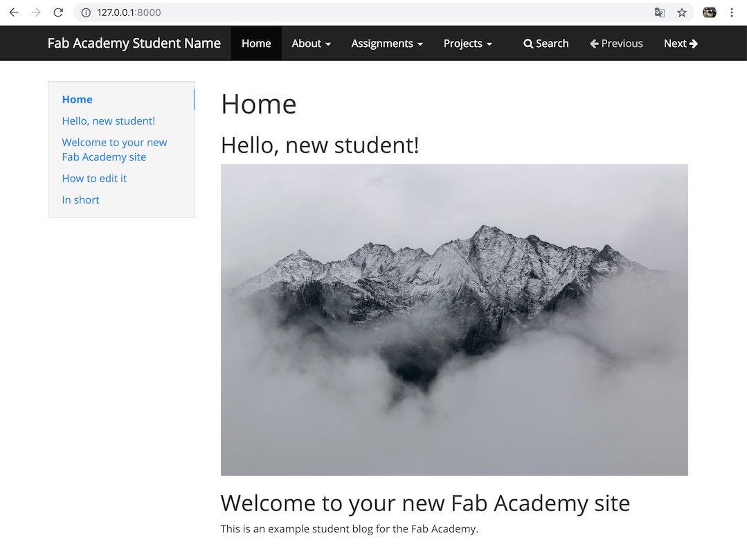 First, with following the installation page, I installed MkDocs on my Mac. Then, to confirm MkDocs works well, I moved to my fabacademy repository, then type “mkdocs serve”.