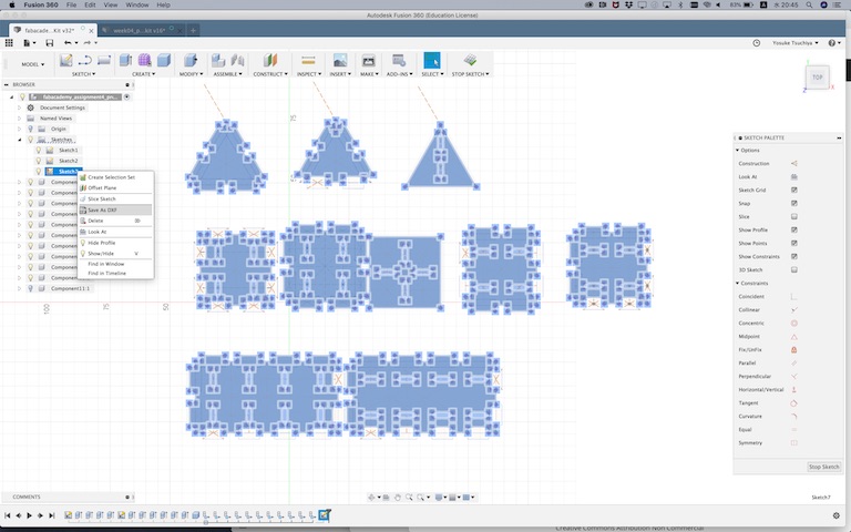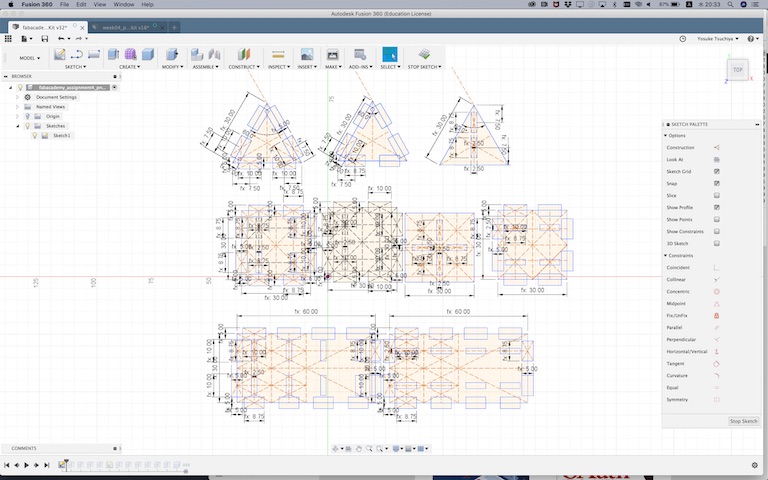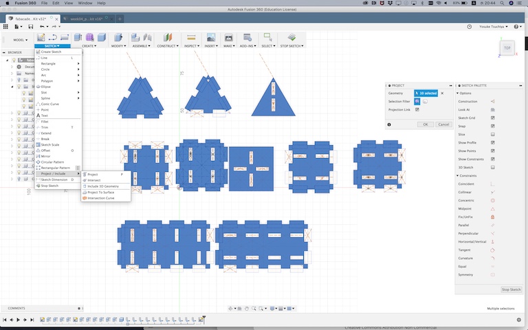 After sketeched some patterns of module, I did “extrude” each shapes and make those components.