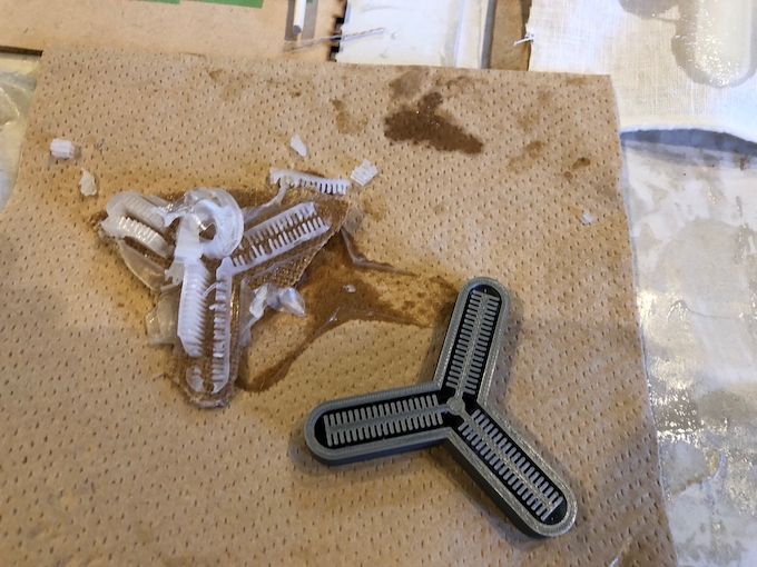 The result was… not good. It was quite difficlt to remove the softgripper from the mold. As a result, some parts were broken when removing it.