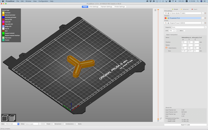 I downloaded Prusa slicer and isntalled into my Macbook. Then, open a stl file of the mold.