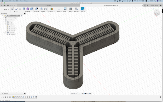 First, I made a 3D model of mold for the soft gripper. In this assignment, I decided to make a softgripper which have three arms.