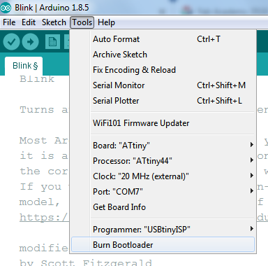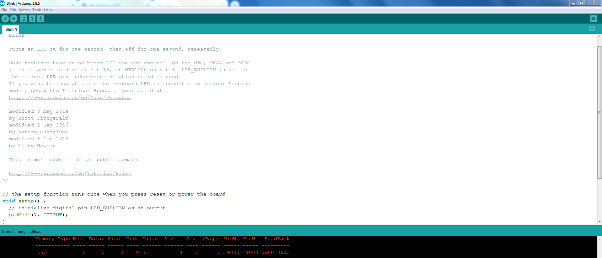 First I have to Burn the bootloader through an ISP programmer. So, here I did it successfully.