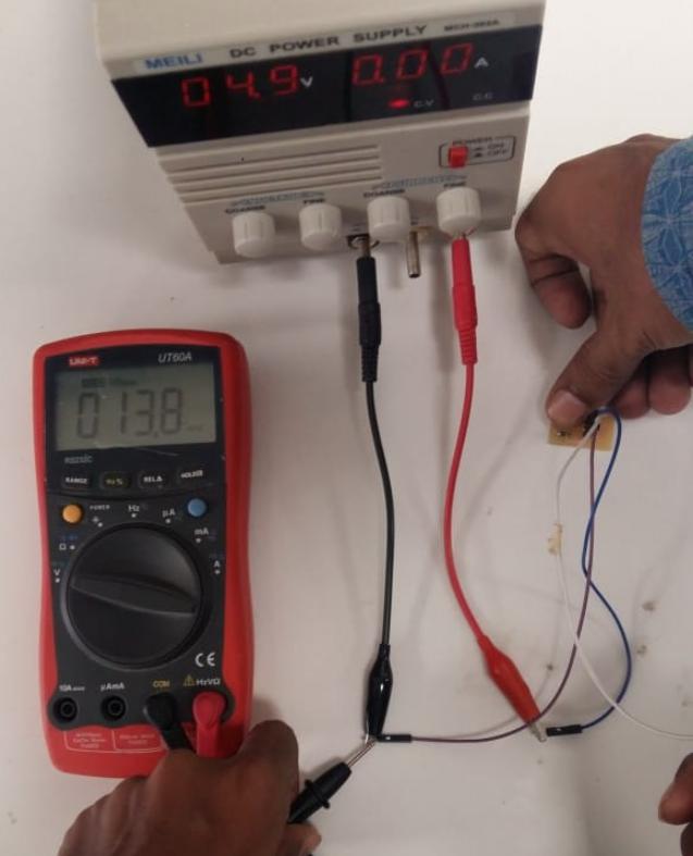 connected the sensor module to 5 voltage and checked the output on data pin and ground using multimeter. We observed that whenever we increase the intensity of light voltages increase and whenever
