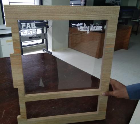 (c) shows the acrylic based front side of vending machine which shall be laser cut after cnc machining.
