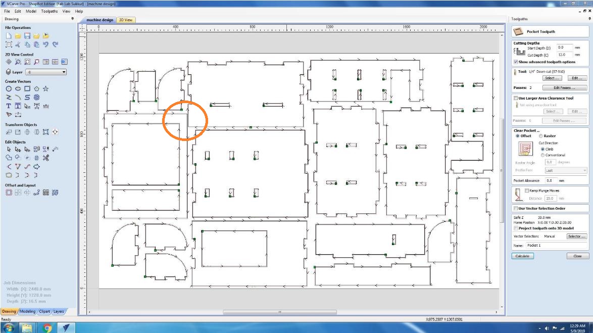 This part was done by ME. In cnc milling we normally use Vcarve software for generating toolpaths. Before generating any tool path I used dog bones in order to pressfit the design