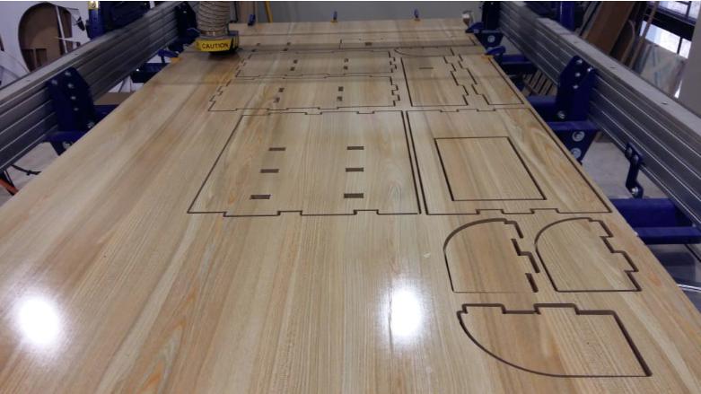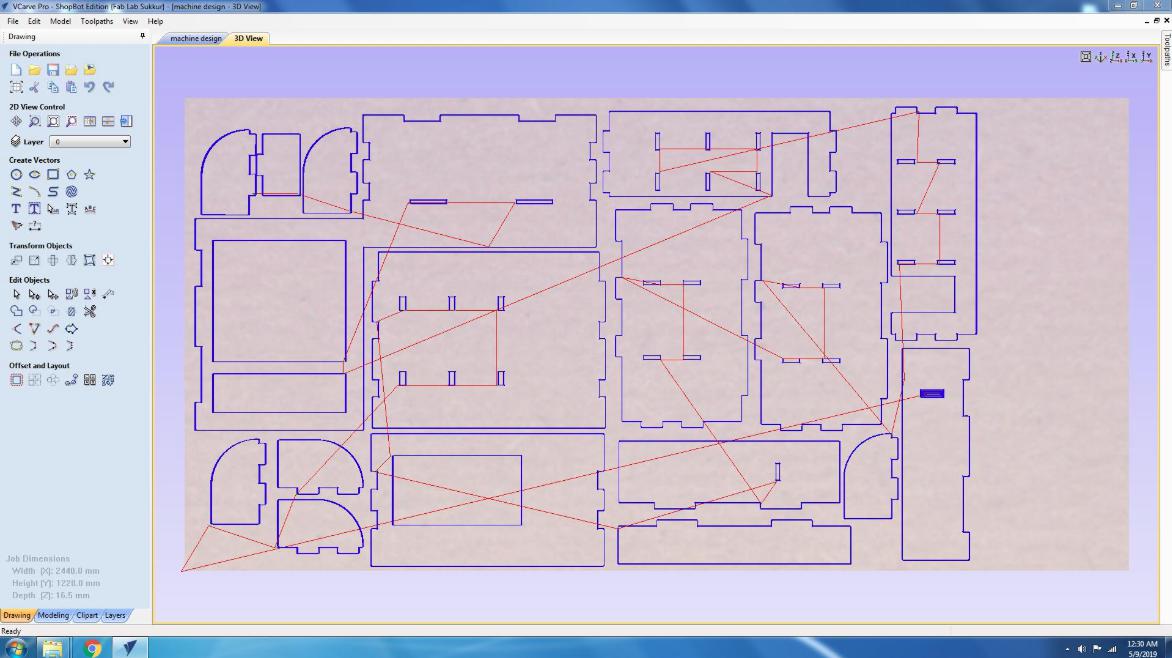 I tried to cut this in shopbot where we used laminated 16mm thick mdf sheet. After cnc milling we assembled this machine in a team and proceeded further. The cutting process and assembly of design
