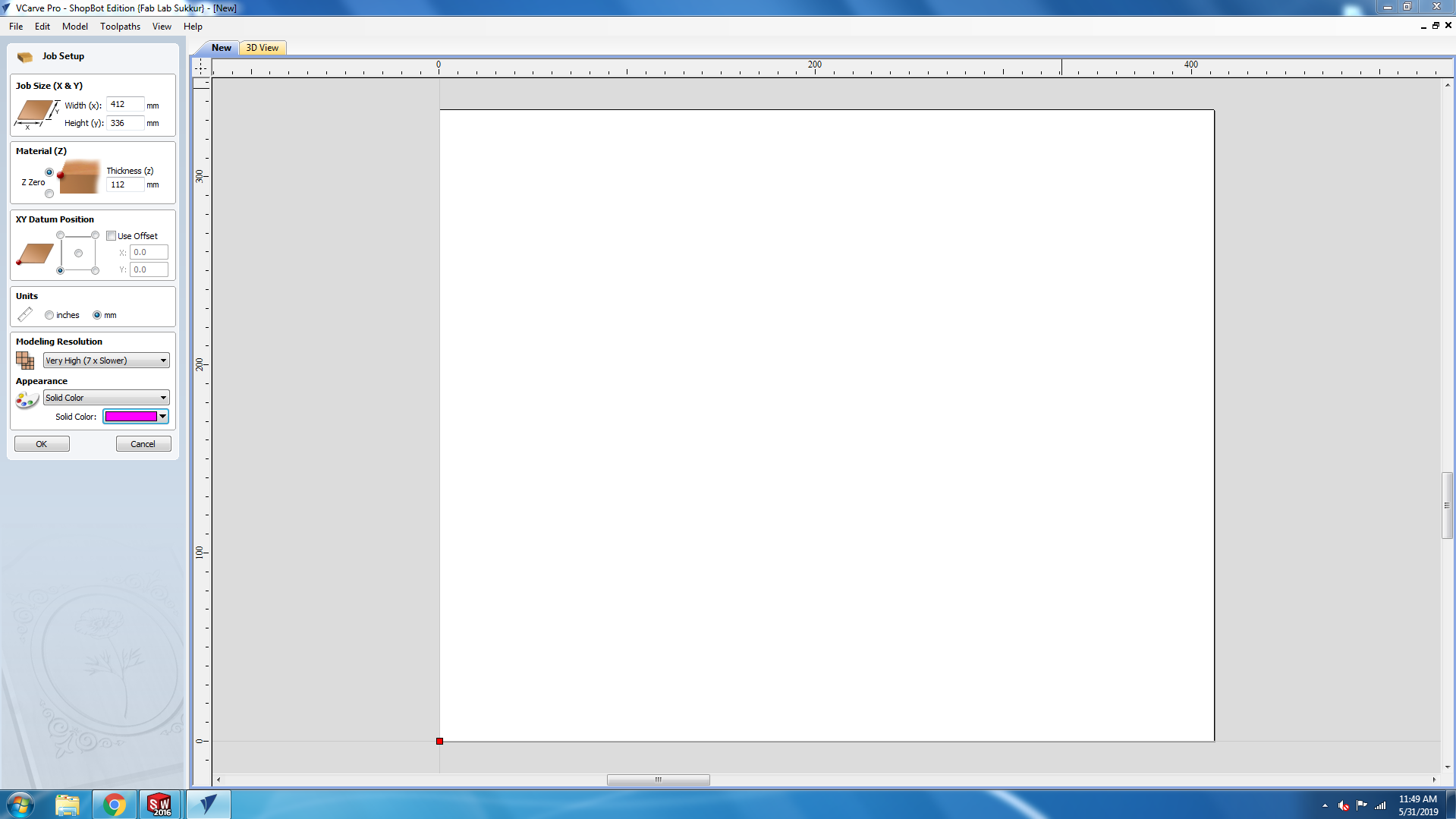 • Open the Vcarve, click on file and select new file.