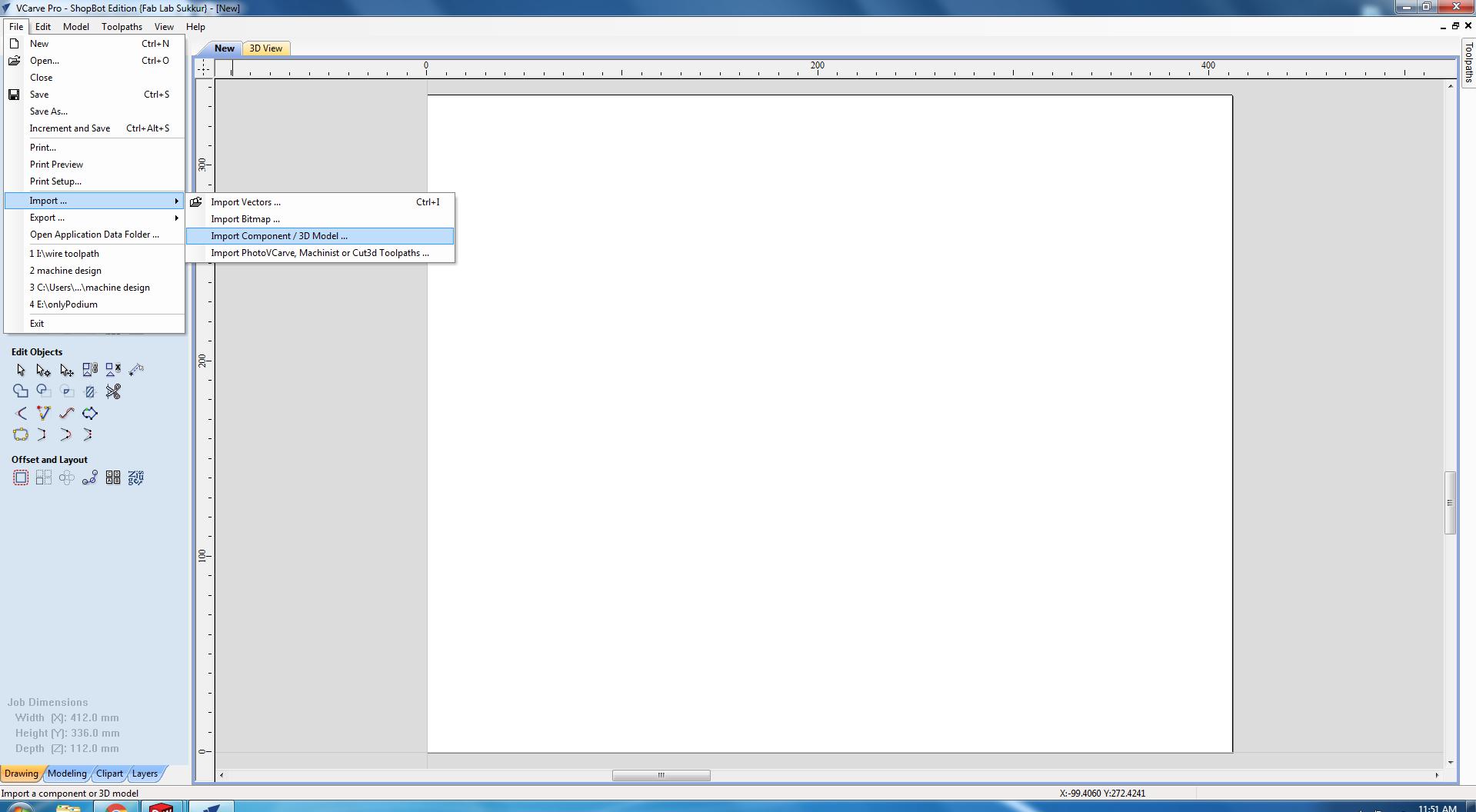Initially, a new Vcare file was opened and the dimensions were set according to the size of the model (222 x 101mm).Then by importing the Component/ 3D model , the model is imported. Here we make