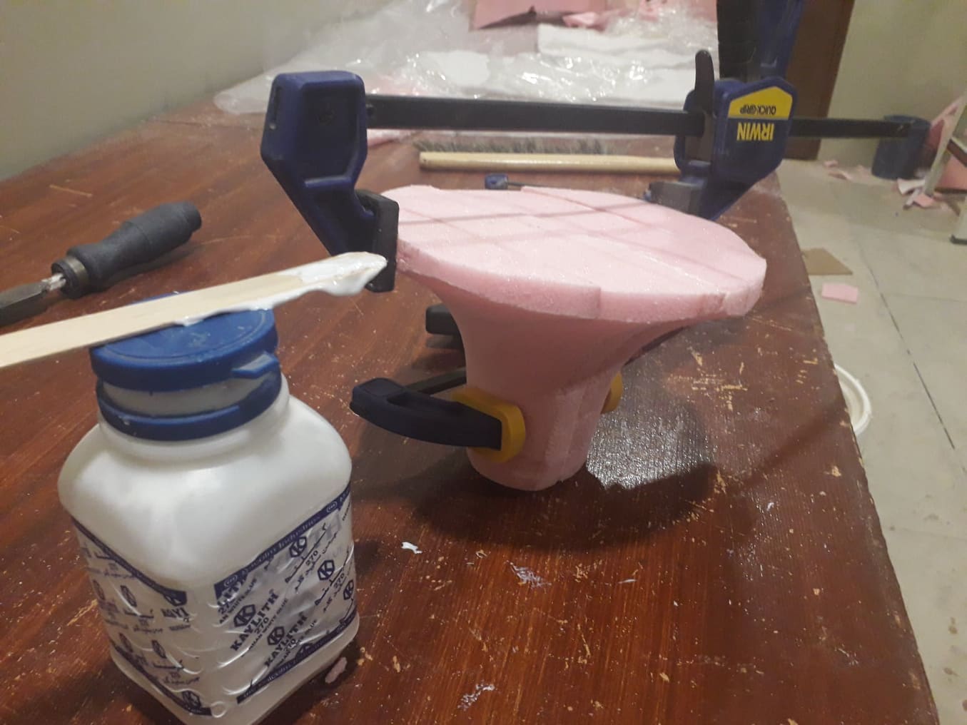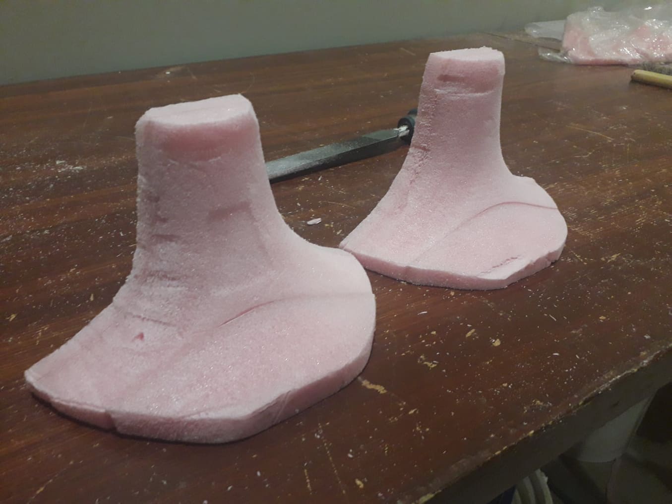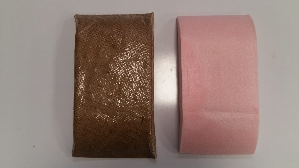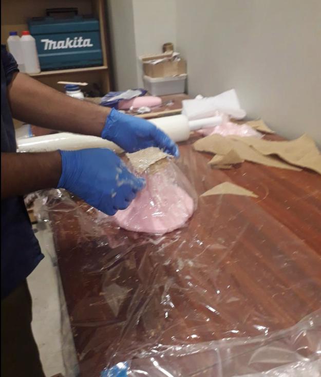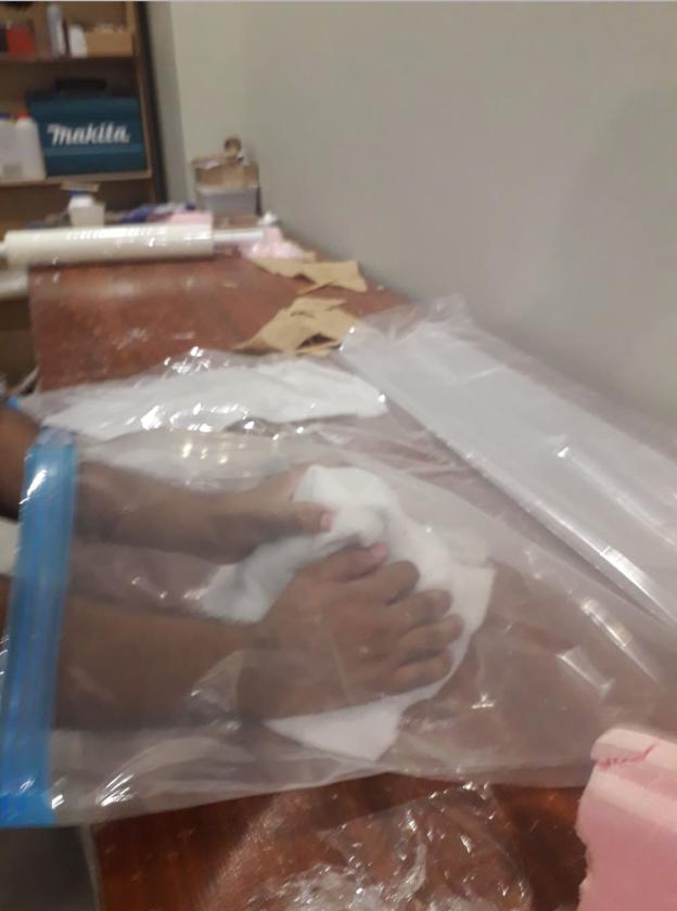 Layer2: mold of oam covered with wrapping plastic