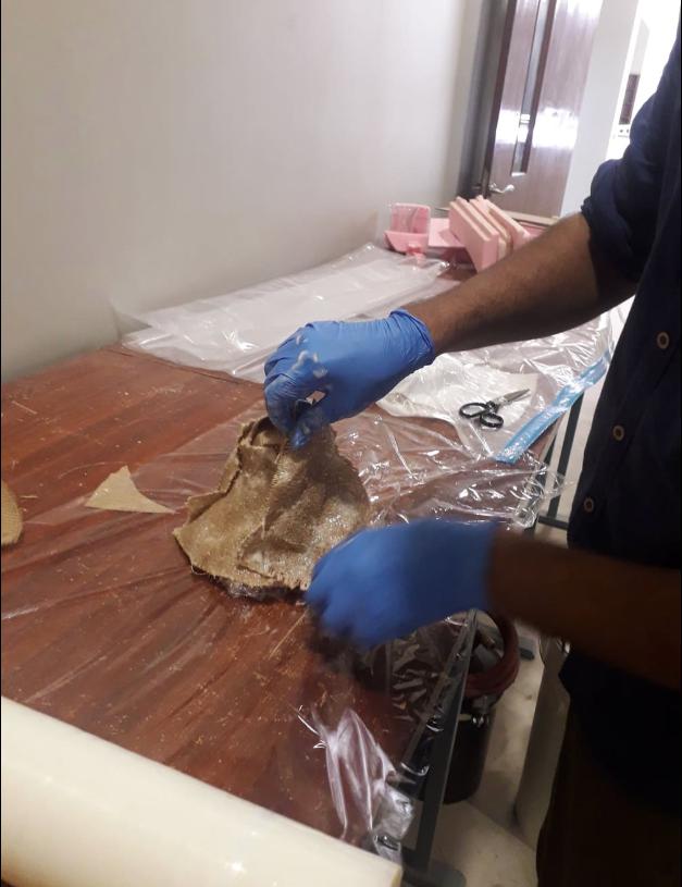 Paste the resin dipped fabric on Mold then again make a layer of plastic on it and squeeze it over surface so it can attain a shape.