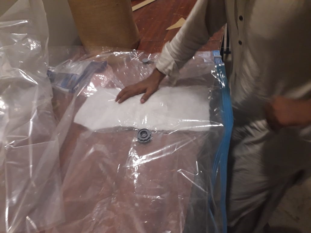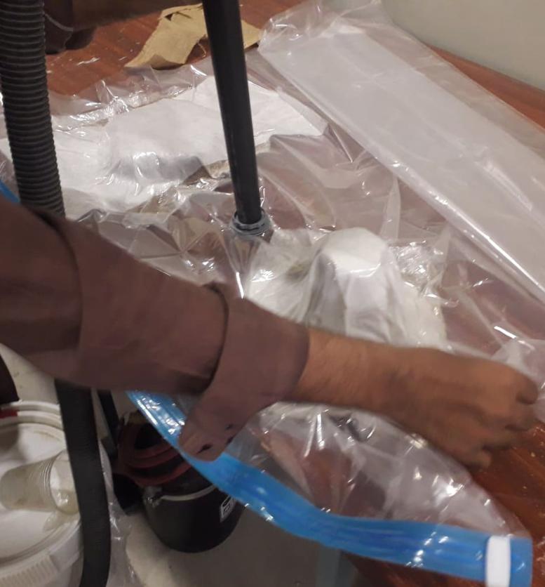 The arrangement of vacum for the model The model is being put in the vaccum for curing for at least one day
