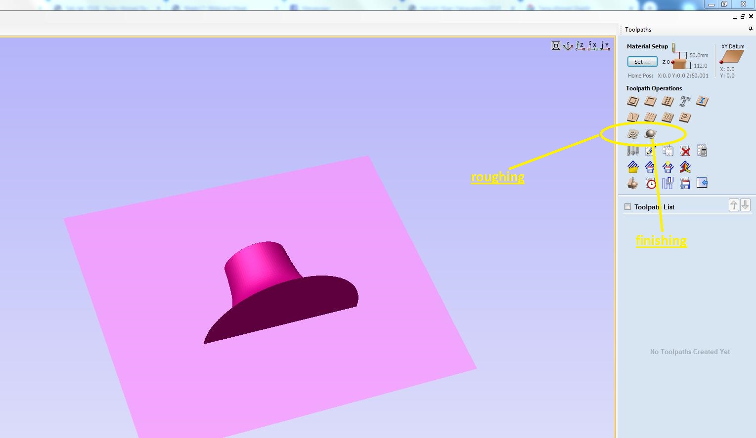 • First generate the roughing toolpaths. Click on rough toolpath.