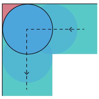 T-BONE:There is another way to cover that area, though. Instead of 'pushing' a circle into the corner of your design, you can push a circle directly in one direction, up or sideways.