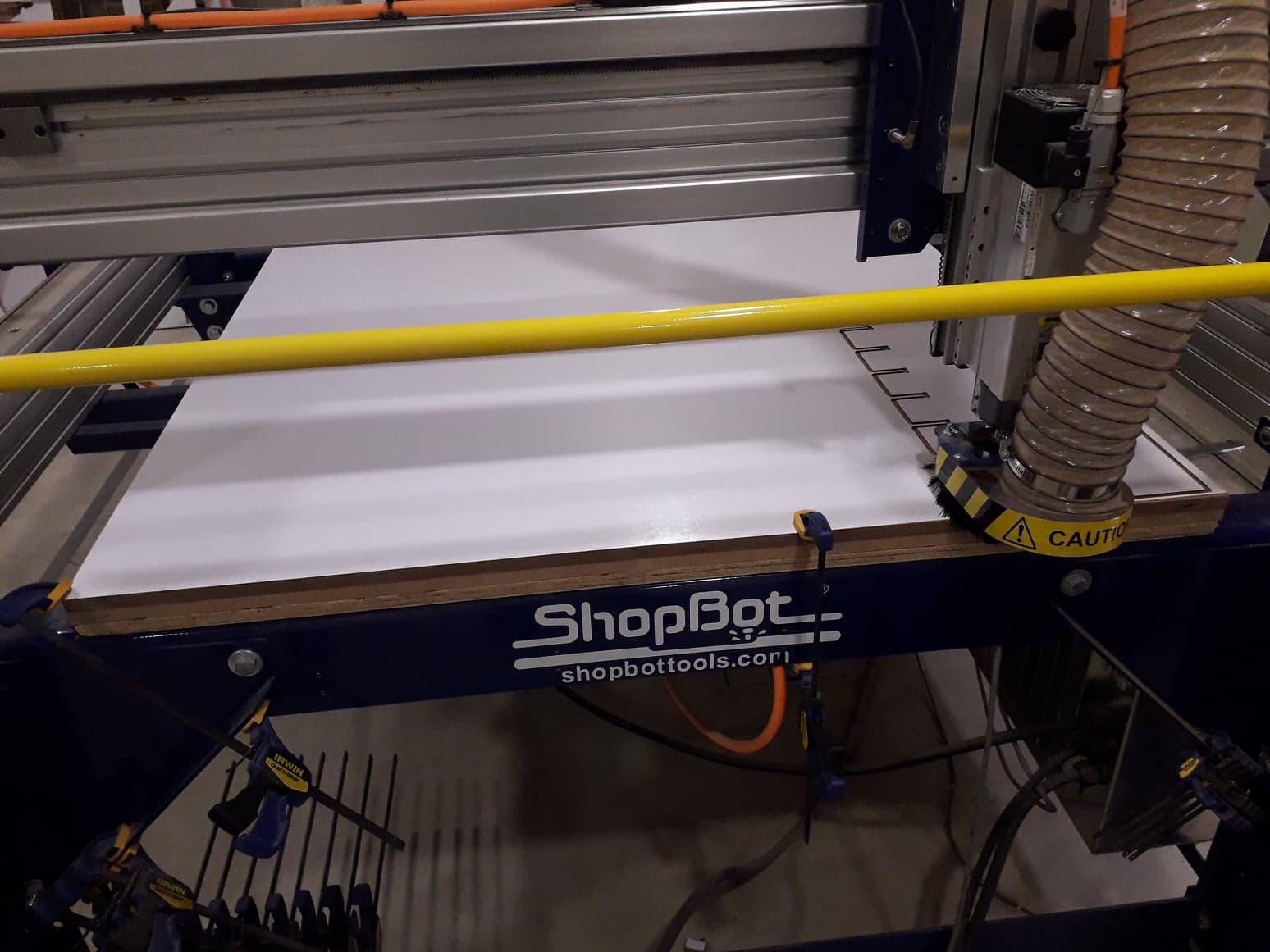 I place a MDF sheet(length=8feet, width=4feet)on the machine bed and made setting according to my need and Machine.