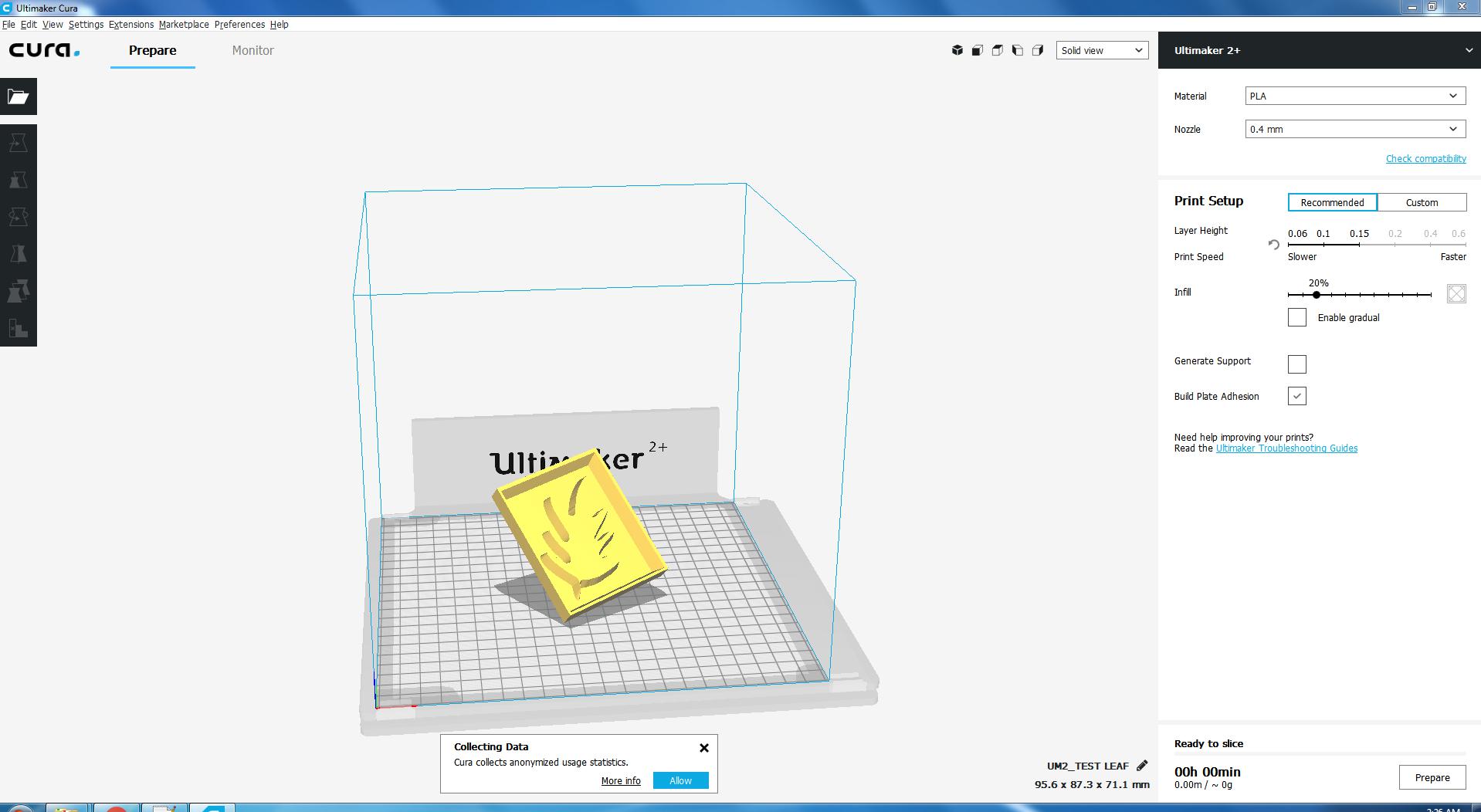 I opened the .stl file in Cura, you can also see curves on the leave.